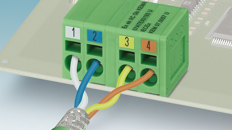 Phoenix Contact tilbyder nu de første printklemmer til Profinet dataoverførsel. Hver af de 4-polede MKDS 1, SPTAF 1, ZFKDS 1,5C og SPT 2,5 printklemmer er designet specielt til tilslutning af twisted pair ledere med tværsnit på 0,14 mm2 til 4 mm2. Ledertilslutningen sker enten med fjedertilslutning (ZFKDS 1,5C), skruetilslutning (MKDS 1) eller Push-in tilslutning (SFTAF 1 og SPT 2,5).