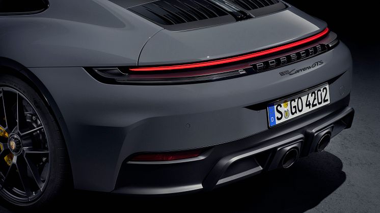 Bagtil får det redesignede lysbånd med Porsche-inskription den nye 911 til at fremstå bredere, mens gitteret over motoren nu består af fem finner på hver side af stoplygterne – disse flyder elegant ned i den automatiske hækspoiler. Desuden er nummerpladen flyttet højere op på kofangeren, hvilket bidrager til det generelt mere sportslige look. Mens 911 Carrera fås med en sportsudstødning som ekstraudstyr, er 911 Carrera GTS som standard udstyret med et særligt GTS-sportsudstødningssystem.