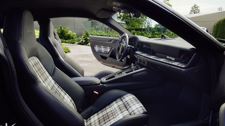 Også interiøret i den nye 911 Turbo 50 Years er fyldt med Turbo-historie. Det gælder særligt sæder, paneler og dørsider, som er betrukket med det karakteristiske McKenzie-tern fra de tidlige 911 Turbo-modeller. Som en kontrast til dette fremstår en række elementer i Turbonite, blandt andet sikkerhedsseler, syninger og betjeningsknapper, mens A-stolper, solskærme og loft er betrukket med mørkt Race-Tex.