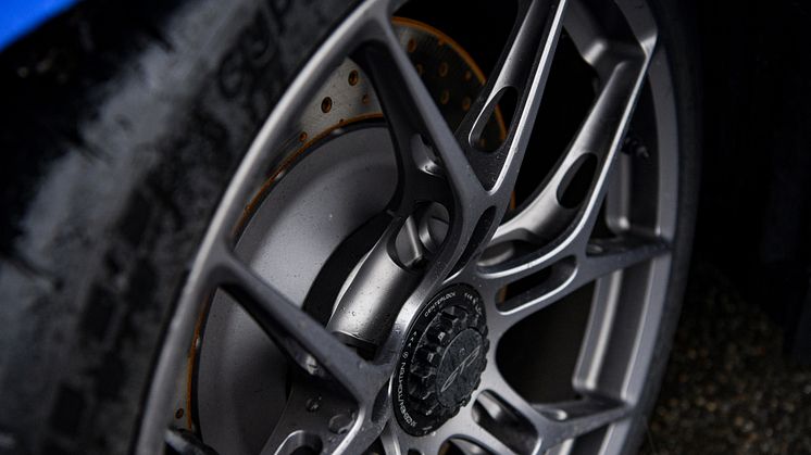De 20- og 21-tommers fælge i smedet letmetal, som i forvejen fås til 911 GT3 og reducerer vægten med i alt 7,3 kilo, er et perfekt match til Manthey Performance Kit. Med kittet er bremserne desuden forsynet med stålarmerede bremseslanger, som gør det muligt at øge præcisionen i bremsetrykket og dermed angribe svingene endnu skarpere. Særligt udviklede bremseklodser er også tilgængelige i forbindelse med Manthey Performance Kit.
