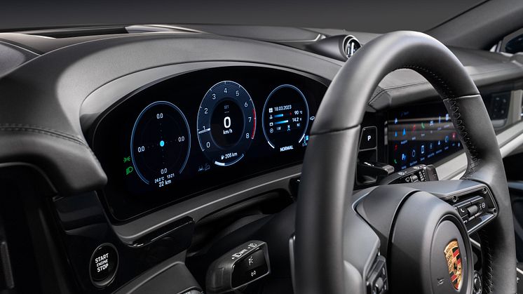 Både fører og forsædepassager kan således opleve et komplet nyt cockpit, som forener et stærkere førerfokus med nye og interaktive elementer. Instrumenteringen er nu fuldt digital med et fritstående og kurvet 12,6-tommers display, som giver et moderne og let udtryk. Afhængigt af udstyrsniveau kan der vælges mellem op til syv forskellige designs, hvor enten omdrejningstælleren, online-navigationen, Night Vision Assist eller 3D-køreassistentsystemet vises i forgrunden. En mere diskret opsætning samt en klassisk visning er også mulig – hvor sidstnævnte gengiver den karakteristiske Porsche-instrumentering med fem analoge ure på digital vis.