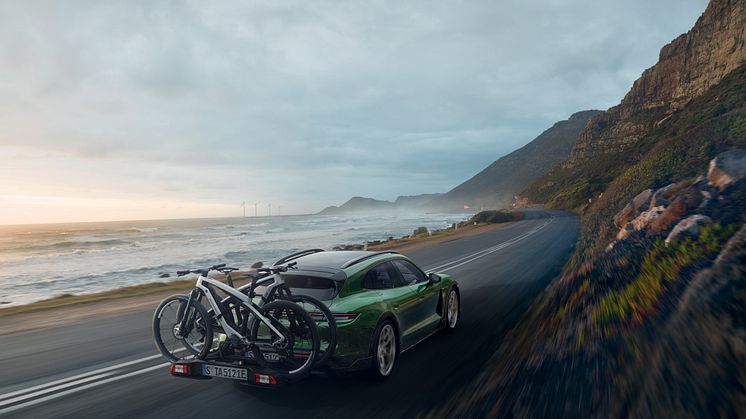 Specielt til Taycan Cross Turismo har Porsche udviklet en cykelholder til bilens bagende med plads til op til tre cykler, og den sætter nye standarder, hvad angår dimensioner og håndtering. Den kan anvendes universalt til forskellige hjultyper. En innovativ feature: Bagklappen kan også åbnes, når cykelholderen er læsset. Med eBike Sport og eBike Cross præsenterer Porsche samtidig to elcykler af høj kvalitet, der med tidløst design, stærke præstationer og bæredygtig teknologi passer perfekt sammen med Taycan Cross Turismo.