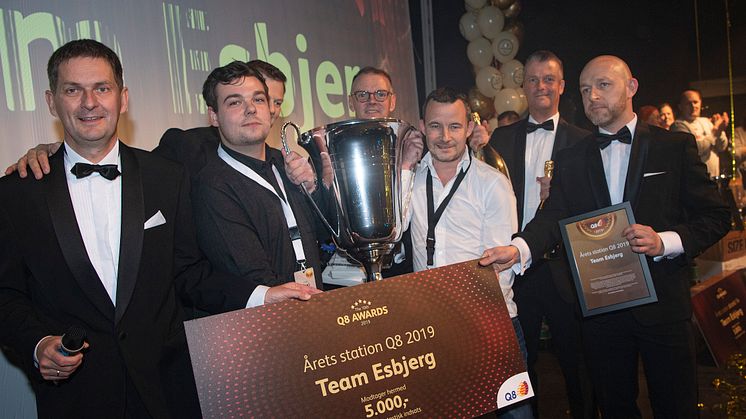 Hvert år kårer Q8 Årets Station i Danmark. I år gik den eftertragtede pris til Team Esbjerg, der ud af i alt 107 Q8 servicestationer har toppræsteret på alle parametre, når det handler om at være årets bedste stop på vejen. Stationen har især udmærket sig ved at levere fantastiske resultater hele året igennem og være et fænomenalt eksempel på, hvad Q8 som virksomhed står for.