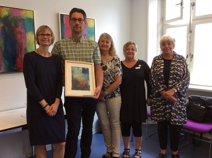 De glade modtagere: Anette Hendrup Smith kostvejleder ved Sundhedscenter Rebild, Brian Pedersen leder af produktionskøkkenet i Rebild Kommune og primus motor på efteruddannelsen, Hanne Kramer konsulent ved Erhversskolerne i Aars, Mariann Aagaard Regionsformand, og sekretariatsleder på VEU Center Aalborg Himmerland Jill Ellermann.
