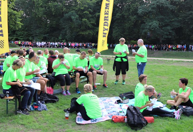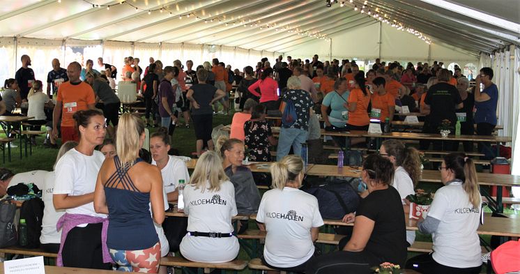 • Kommunens medarbejdere spiste sammen i teltet efter løb- og gåtur