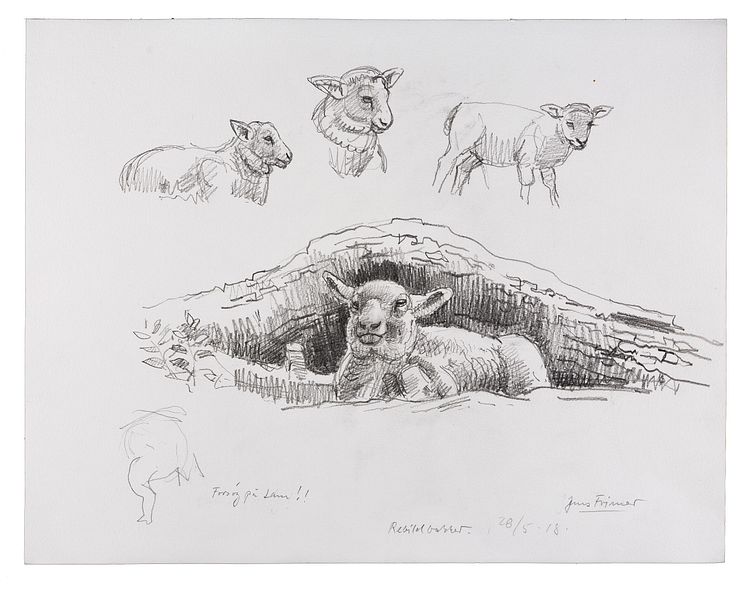 • Jens Frimer, Får i Rebild Bakker, blyant