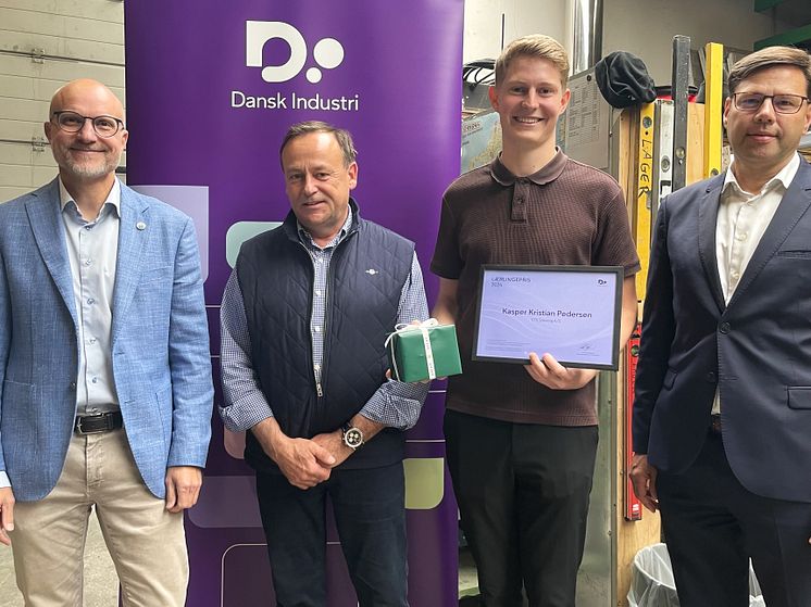 • Borgmester Jesper Greth, direktør Per Sadolin Pedersen STS Støvring, prismodtageren Kasper Kristian Pedersen og Henrik Hagens DI Aalborg.jpg