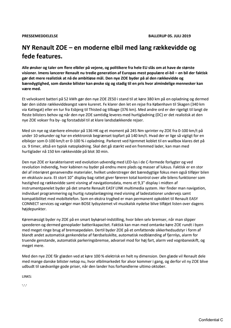 Alle ønsker og taler om flere elbiler på vejene, og politikere fra hele EU slås om at have de største visioner. Imens lancerer Renault nu tredie generation af Europas mest populære el-bil – en bil der faktisk gør det mere realistisk at nå de ambitiøse mål. Den nye ZOE byder på al den rækkevidde og bæredygtighed, som danske bilister kan ønske sig og til en pris flertallet kan betale.