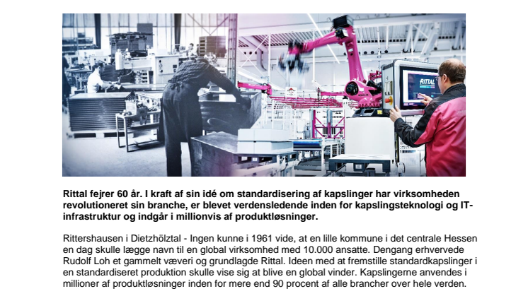• Rittal fejrer sit 60-års jubilæum og kan se tilbage på en fantastisk udvikling og fremad mod en strålende fremtid.