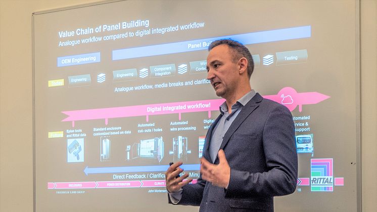 Programmet omfattede indlæg om ’Fremtidens Industri 4.0 med Rittal i værdikæden’ af Stefan Gluhovic, Rittal, der fortalte om nyhederne i Rittals store program af skabsløsninger, og om hvordan kombinationen af Rittals skabe og EPLANs engineering-værktøjer skaber en stor synergi i værdikæden.