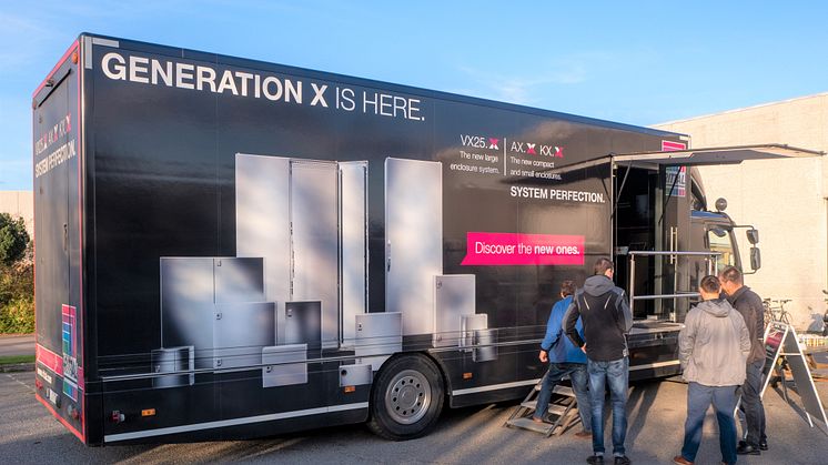 <elkas 4> Som afslutning på seminaret kunne deltagerne opleve den digitale værdikæde og de seneste nyheder inden for kompakttavler og klemkasser i Rittals demobus, der var kørt i stilling på parkeringspladsen uden for bygningen.