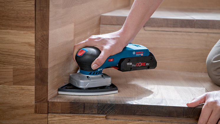 Med de to nye batteridrevne rystepudsere udvider Bosch Professional nu deres sortiment af batteri-slibemaskiner, der gør det krævende arbejde med hjørner og kanter langt nemmere.
