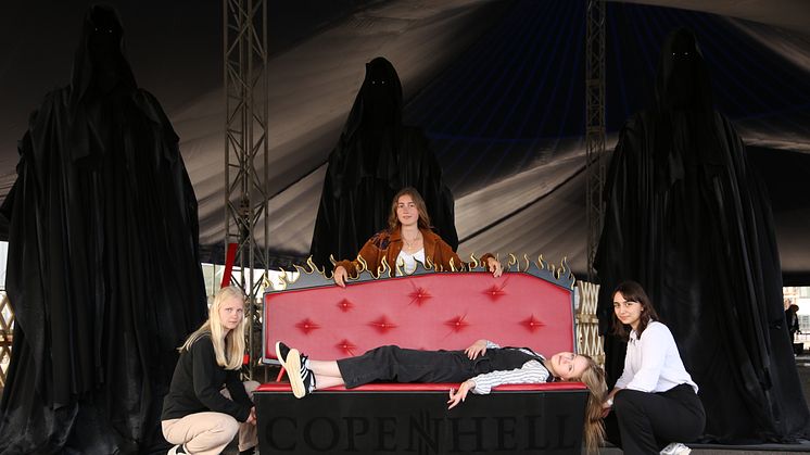 Vinderholdet er fra Holstebro HTX (UCH) og består af Victoria Holch Bilenberg Nielsen, Ea Marie Sloth Gisselbæk, Lærke Rohde Bjergelund og Sarah Lein Sadeghi, som alle går på designlinjen. De fire kvinder har særligt udmærket sig ved at have fokus på detaljer samt at ramme lige ind iCOPENHELLs ånd. “Vi arbejder altid ud fra nogle skitser og modeller, så vi startede med at tegne i hånden, dernæst lavede vi en 3D-tegning, og til sidst tog vi over i værkstedet og satte nogle endelige mål på. Vi byggede et skelet op, satte trykimprægnerede plader på, så det kan holde til vind og vejr, og så har vi polstret med vegansk læder,” fortæller Sarah om processen.