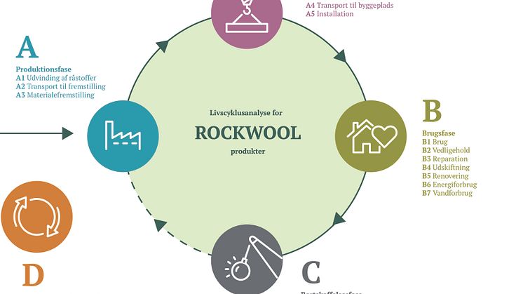 ROCKWOOLs nye EPDer dokumenterer produkternes livscyklusfaser fra ”vugge til grav”. Det er et vigtigt forhold, når man skal se på miljøbelastningen for vores byggeri. Kun ved at medtage hele livsforløbet får man et retvisende billede af den samlede miljøeffekt. Nogle materialer har nemlig en betydelig miljøeffekt ved endelig bortskaffelse eller en eventuelt ny anvendelse af produktet, fx ved direkte genbrug eller genanvendelse i andre produkter. Fra oktober bliver det standard, at EPDer skal omfatte alle livscyklusfaser.