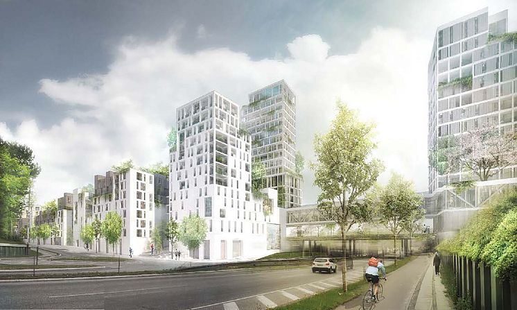 Porten til Rødovre med de tre tårne og bro over Tårnvej