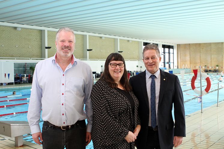 Fra venstre: Leder af Vestbad Claus Madsen, næstformand for Vestbads bestyrelse Lene Due (Rødovre Kommune), formand Kent Max Magelund (Brøndby Kommune).