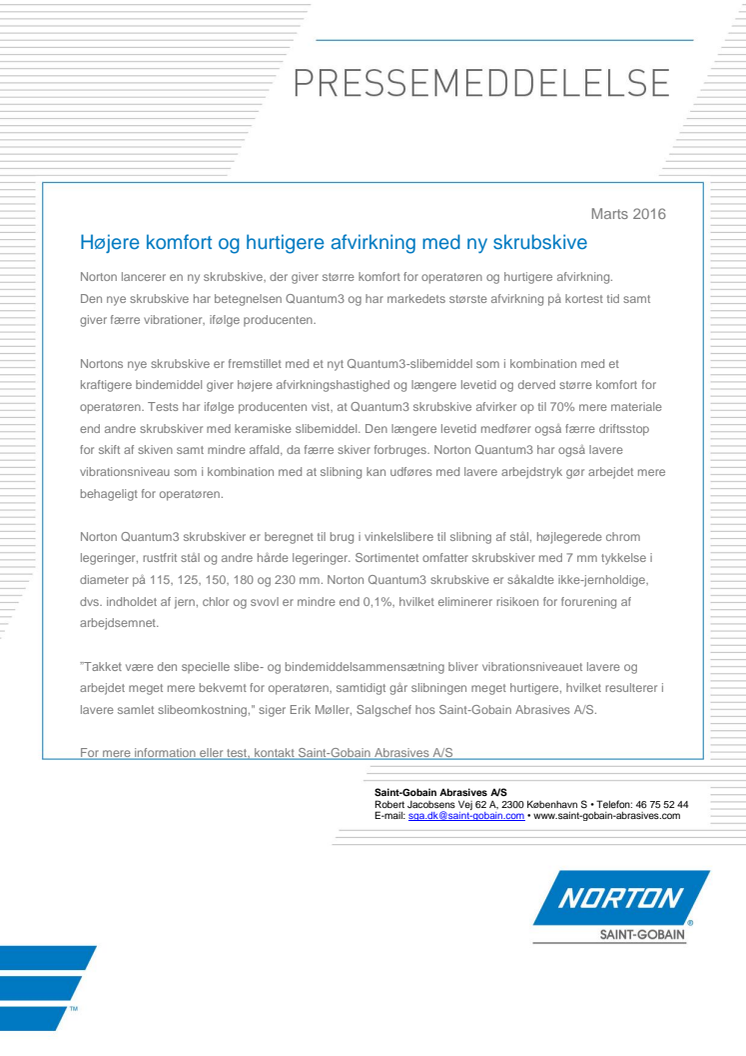Norton lancerer en ny skrubskive, der giver større komfort for operatøren og hurtigere afvirkning.