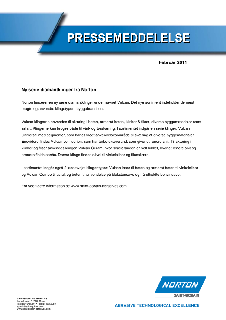 Norton lancerer en ny serie diamantklinger under navnet Vulcan. Det nye sortiment indeholder de mest brugte og anvendte klingetyper i byggebranchen.