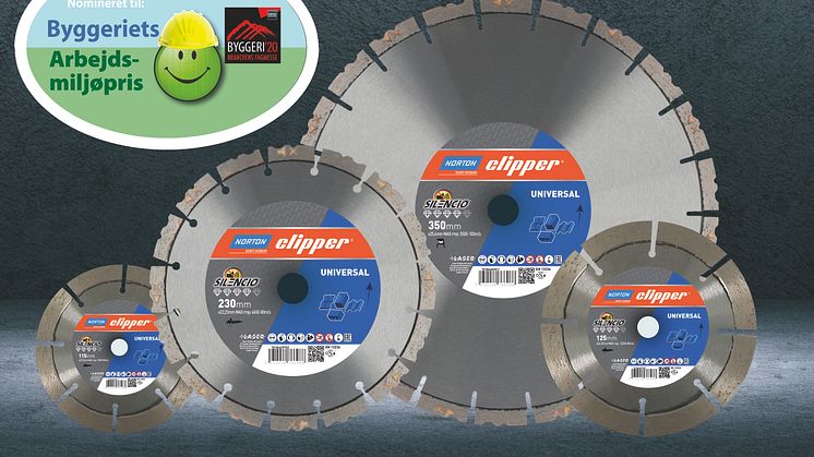 NORTON CLIPPER diamantklinger fra SAINT-GOBAIN ABRASIVES A/S sætter endnu engang standarden for støjreduceret skærende værktøj til bygge- og anlægsindustrien, i form af en helt nyudviklet serie af lasersvejste diamantklinger til overkommelige penge – som muliggør en endnu bredere skare af virksomheder/håndværkere at skære beton og universelle byggematerialer med markant bedre komfort for brugeren, foruden at forbedre arbejdsmiljøet på arbejdspladsen såvel som i nærområdet.
