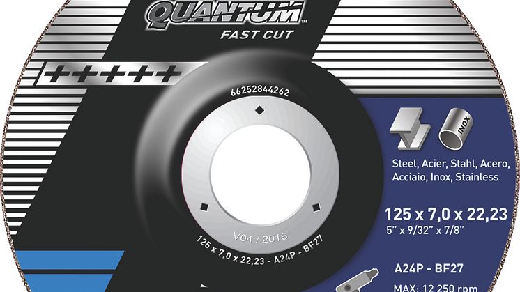 Quantum Fast Cut er ideel til slibning af støbejern, rustfrit samt højtlegeret stål og anvendes på vinkelsliber. Skrubskiverne findes i dimensionerne 115, 125, 180 og 230 mm. Er særdeles velegnet ved lavt arbejdstryk og store kontaktområder, giver en jævn og konstant slibehastighed selv på højtlegeret stål.