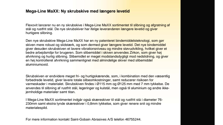 Flexovit lancerer nu en ny skrubskive i Mega-Line MaXX sortimentet til slibning og afgratning af stål og rustfrit stål. De nye skrubskiver har ifølge leverandøren længere levetid og giver hurtigere slibning.