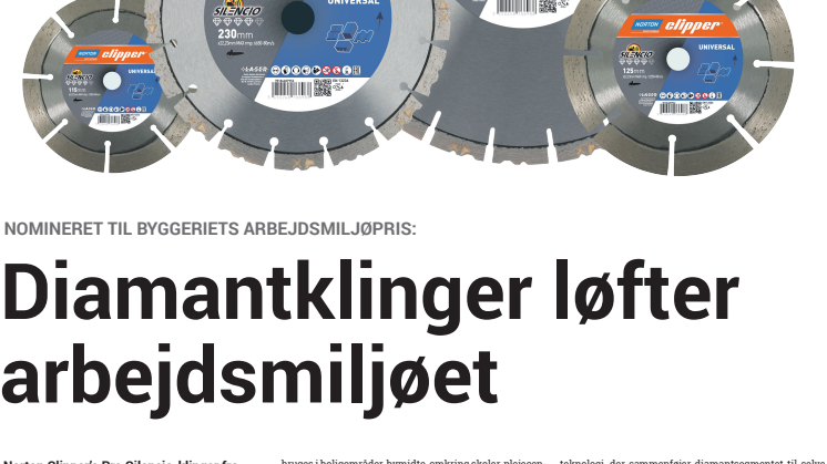 ”Vi er enormt stolte af at Norton Clipper’s Pro Silencio-klinger er nomineret til Byggeriets arbejdsmiljøpris 2020,” fortæller Erik Møller.