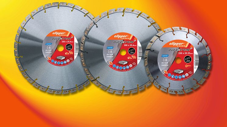 Norton Clipper lancerer en ny diamantklinge til beton, armeret beton og andre hårde materialer. Den nye klinge, som har betegnelsen Duo Extreme+, er en videreudvikling af Duo Extreme, og oplyses at give hurtigere og mere behagelig skæring, samt at have længere levetid i forhold til sin forgænger.