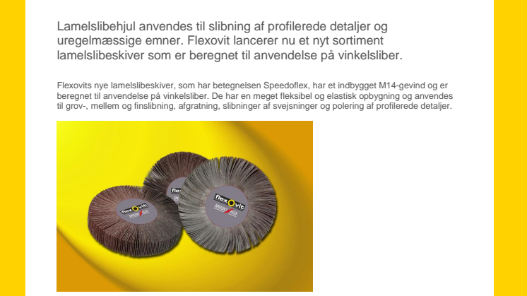 Flexovits nye lamelslibehjul, som har betegnelsen Speedoflex, har et indbygget M14-gevind og er beregnet til anvendelse på vinkelslibere. De har en meget fleksibel og elastisk opbygning og anvendes til grov-, mellem og finslibning, afgratning, slibninger af svejsefuger og polering af profilerede detaljer. Slibelamellerne har en meget fleksibel bomuldsryg som er belagt med slibemiddel af aluminiumoxid. Lamelslibehjulene giver høj og jævn afslibning og har en lang levetid ifølge poducenten. Det bedste resultat opnås ved slibning med lavt arbejdstryk og ved en arbejdshastighed mellem 40 og 50 m/s, svarende til mellem 6100 og 7650 rpm.