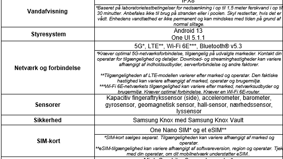 [38] Vilkår og betingelser gælder. Samsung Care+ dækning, servicetype og kampagne kan variere efter land/region, og der kan forekomme selvrisiko (ekstra servicegebyr). For detaljerede oplysninger om Samsung Care+, besøg venligst https://www.samsung.com/samsung-care-plus/.