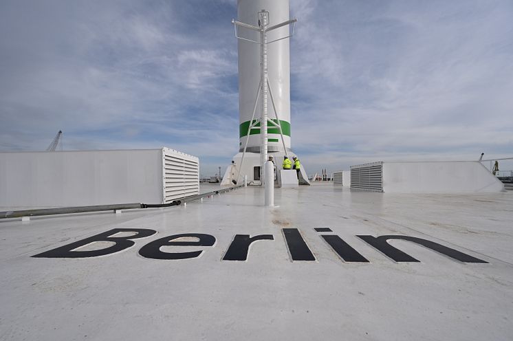 Name and rotor sail on the Scandlines hybrid ferry Berlin