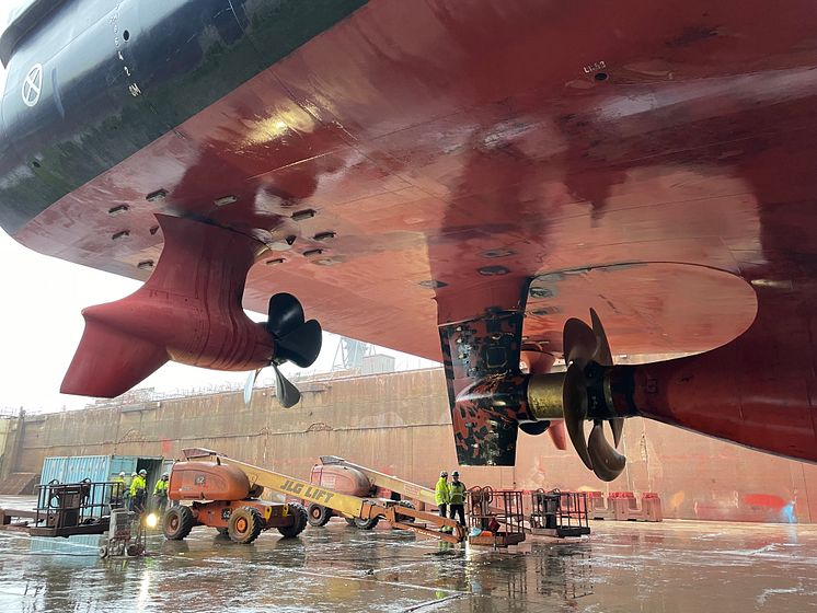 Scandlines hybrid ferry Copenhagen operating on the Rostock-Gedser route; centre propeller