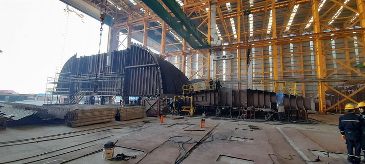 Block 102 of the Scandlines zero direct emission ferry under construction at Cemre Shipyard