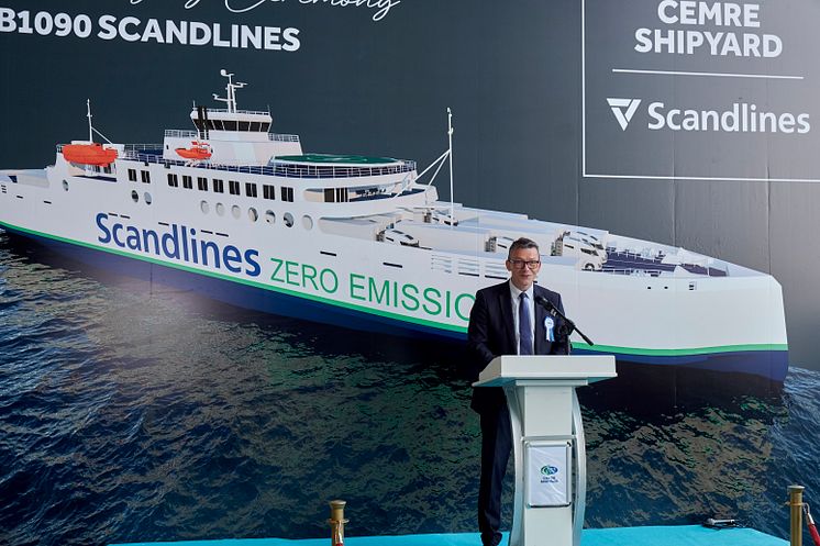 Keel laying of the Scandlines zero direct emission ferry at Cemre Shipyard, Scandlines COO Michael Guldmann Petersen