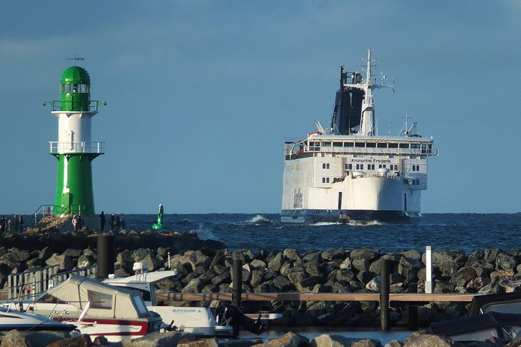Scandlines freight ferry Kronprins Frederik entering the Warnow channel at Warnemünde