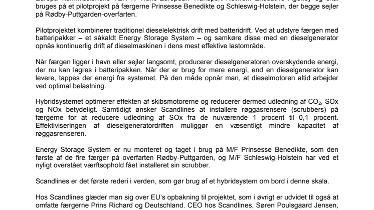 Scandlines er det første rederi i verden, som gør brug af et hybridsystem om bord i denne skala.