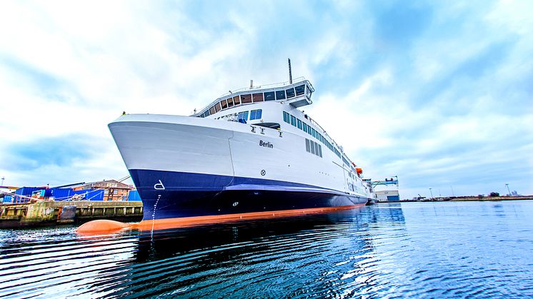 Scandlines’ nye færge til ruten Gedser-Rostock afsejlede onsdag den 20. april 2016 fra det fynske værft FAYARD. Skibet vil tirsdag den 3. maj 2016 blive døbt M/F Berlin.