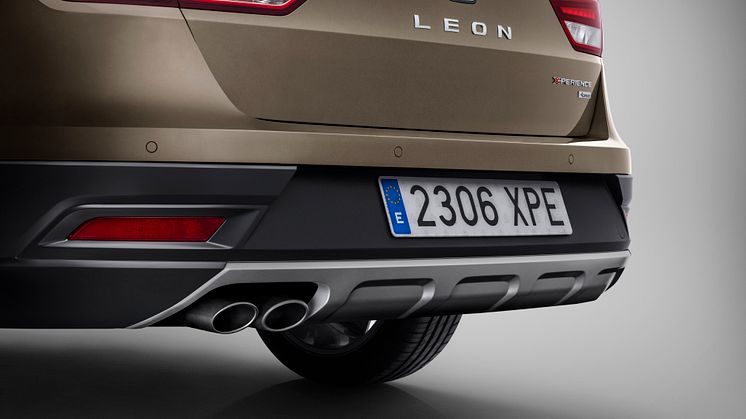 Leon X-PERIENCE får sin egen markante karakter takket være de robuste lister på dørpanelerne og hjulkasserne, den kraftfulde front med store luftindtag og integrerede tågeforlygter med kurvelys samt frontspoileren i aluminiumslook. Bagenden adskiller sig også med en ny stødfanger med en liste i aluminiumslook og forkromede afgangsrør, der er standardudstyr på dieselversionen med 184 hk. De store hjulkasser giver plads til 17" fælge eller 18" fælge (ekstraudstyr) i et specielt dobbelt 5-eget design. Tagrælingerne er anodiseret i sort, men der kan tilvælges krom uden merpris.