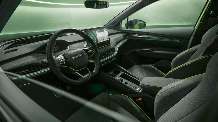 Udstyrsmæssigt bygger Enyaq RS ovenpå Enyaq Sportline og de øvrige Enyaq-modeller. Det vil sige, at det 3-egede sportslæderrat har varme og paddles for rekuperation, ligesom Enyaq RS har bl.a. varmepumpe, el-bagklap med virtuel pedal, 13” infotainmentskærm, Travel Assist med adaptiv fartpilot, navigation, trådløs Apple CarPlay, parkeringssensorer for/bag, bakkamera, 3-zonet Climatronic-klimaanlæg, Phone Box med trådløs opladning, Kessy Advanced (nøglefri betjening), alarm, elektrisk børnelås i bagdøre, 2 x USB-C bag, Sunset – mørktonede tonede ruder bag og anhængerforberedelse. Ydermere har Enyaq Coupé RS som de øvrige coupé-modeller et eksklusivt panorama-glastag.