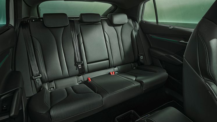 Det sportslige look går igen i den rummeligelige kabine, der har interiørtemaet Design Selection RS Lounge som standard. Sæder, midterarmlæn, dele af instrumentbordet og dørpaneler er beklædt med sort Suedia, og limegrønne syninger skaber kontrast på sæder, instrumentbord og rat. Derudover har instrumentbordet og dørpanelerne detaljer i karbon-look, sportspedalerne har kapper i stål, og loftet og sidestolperne er sorte.