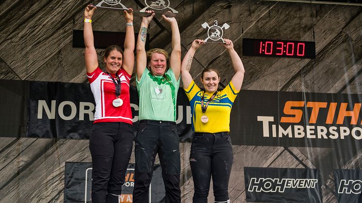 I damernes konkurrenceklasse var Felixia Banck et stort dansk medaljehåb. I konkurrencerne har Banck konkurreret mod gæsteatlet Alrun Uebing, Tyskland, og svenske Tove Njåstad. Den tætte kamp fortsatte i cuppens tredje delkonkurrence, hvor især Banck og Uebing udmærkede sig. Banck satte ny dansk rekord i Stock Saw og nordisk rekord i Standing Block Chop, hvilket gav en delt førsteplads sammen med Uebing. Indsatsen betød en endelig samlet stilling med en guldmedalje til Uebing, sølv til Banck og bronze til Njåstad.