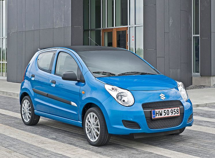 Suzuki Alto GL Aircon model med Sportline udstyrspakke indeholdende 15" alu-fælge, tagspoiler, sort frontgrill, sidelister samt tag i carbonlook.