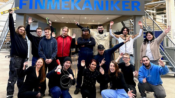 Elever fra Skoleoplæringscenteret i Ballerup fra smede-, automatik-, finmekaniker- og datauddannelserne var i februar samlet for at brainstorme på de mange muligheder med GNIST-projektet. På billedet ses også de to projektlederne fra ATOPOS Sarah Buhl og Cecilie Marie Høeg. Foto: Smedeinstruktør Andreas Andersen, TEC.