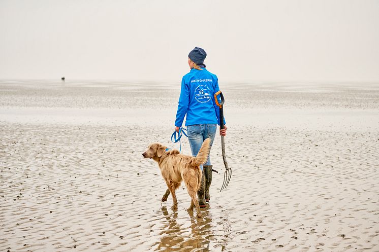 Cuxhaven_Otterndorf_Die_Wattführerin_mit_ihrem_Hund_im_Watt.jpg