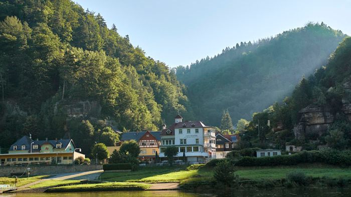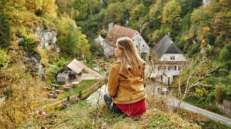 Hayingen: Udsigt til Bio-Gasthof Friedrichshöhle og Wimsener Mühle © DZT / Florian Trykowski