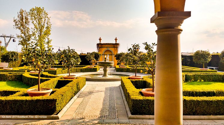 Berlin: "Die Gärten der Welt "med Mahrzahns skyline i baggrunden © visitBerlin / Jan Frontzek