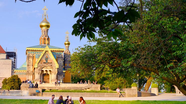Darmstadt: Mathildenhöhe foran det russiske kapel