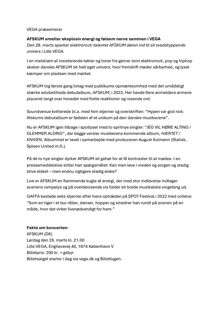 AFSKUM smelter eksplosiv energi og følsom nerve sammen i VEGA