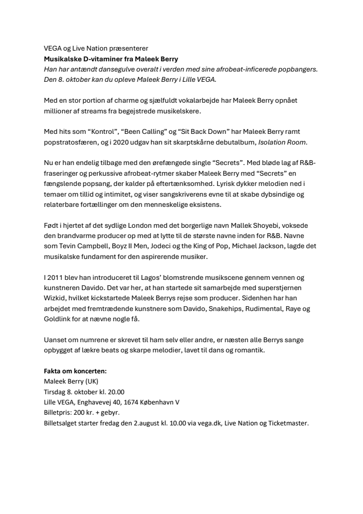 Læs mere om og køb billet til koncerten med Maleek Berry.
