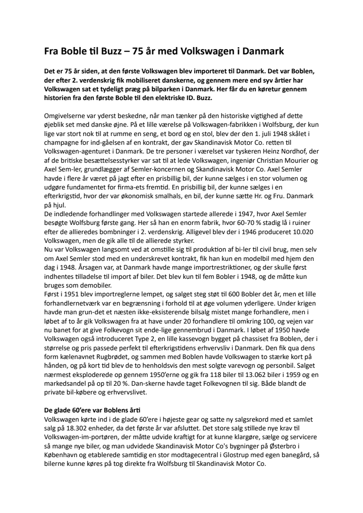 75 år med Volkswagen I Danmark - fra Boble til Buzz