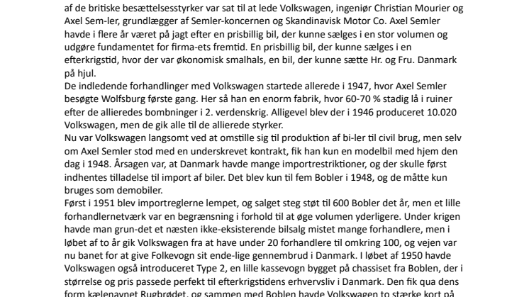 Du kan læse mere om Volkswagens historie i Danmark i det vedhæftede dokument: